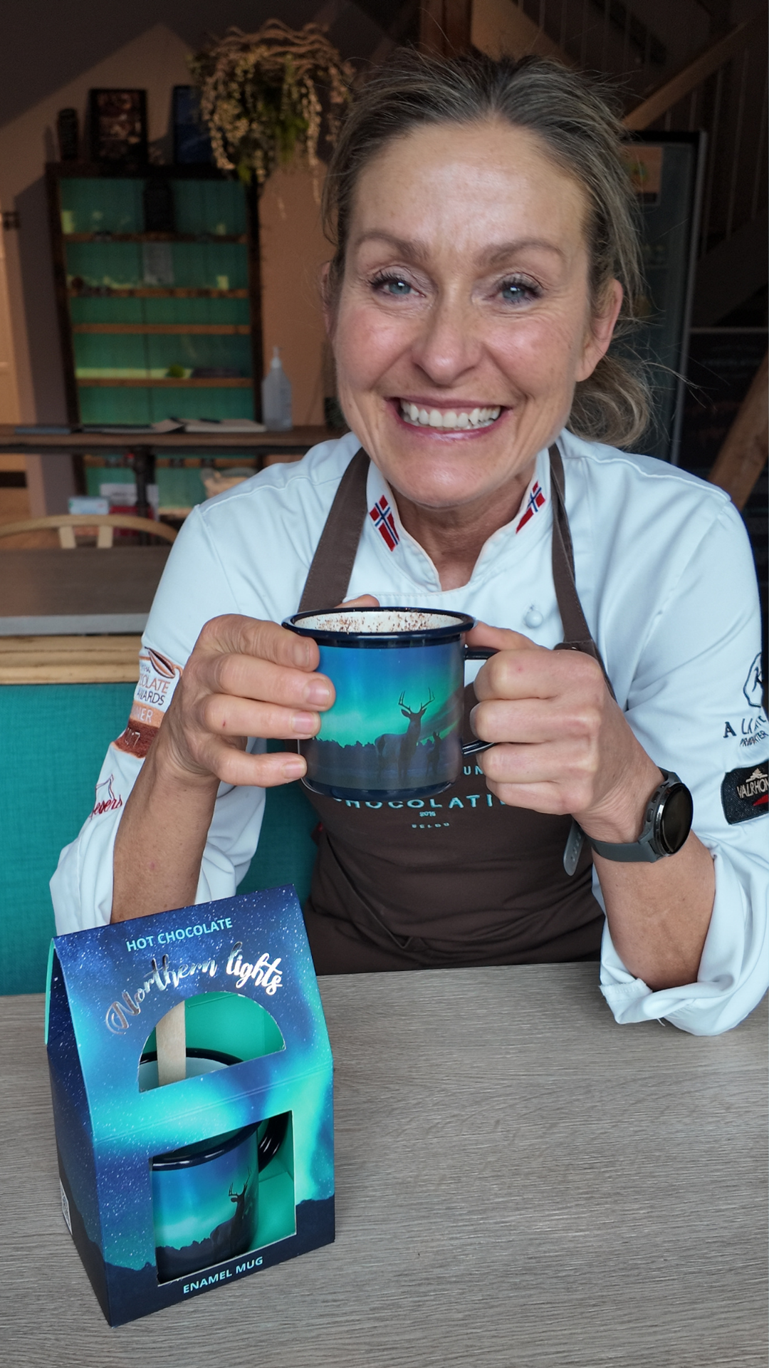 Iris drikker varm sjokolade