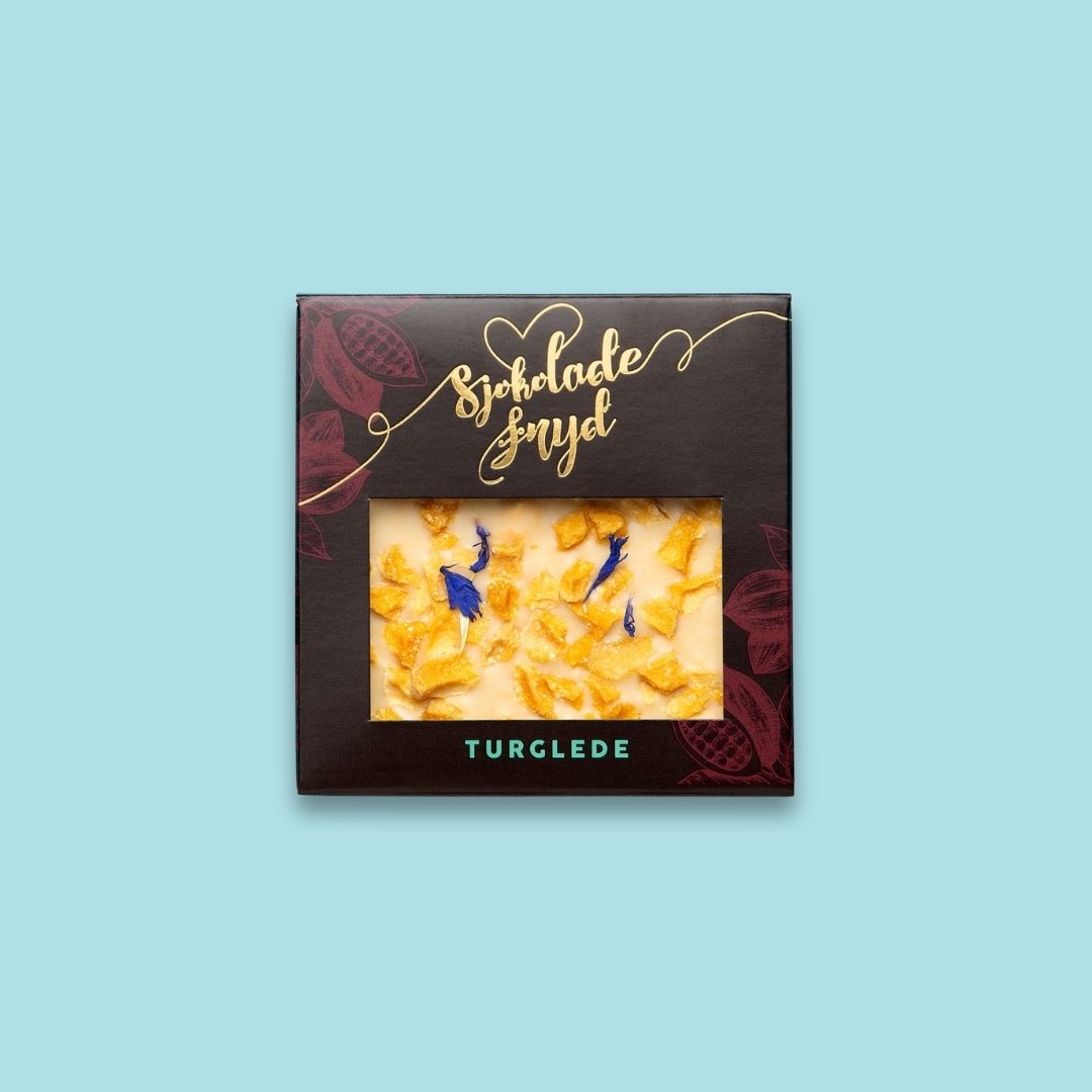 Turglede sjokoladeplate med hvit sjokolade smaksatt med frisk og eksotisk pasjonsfrukt. Et nydelig lite mellommåltid som gir ekstra energi og påfyll på små og store turopplevelser.
