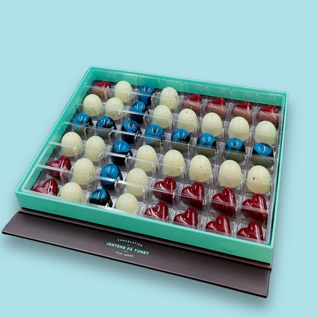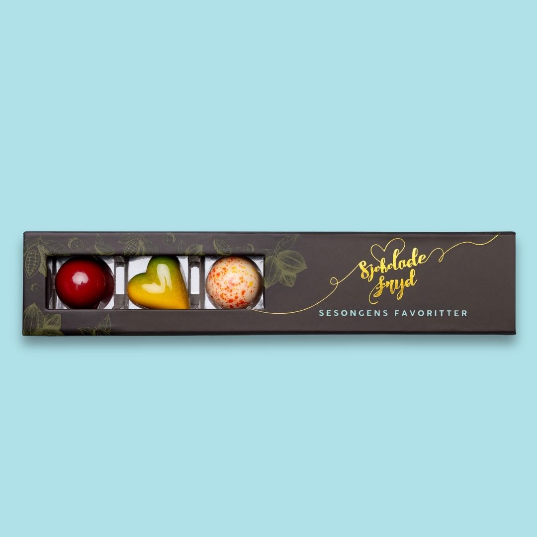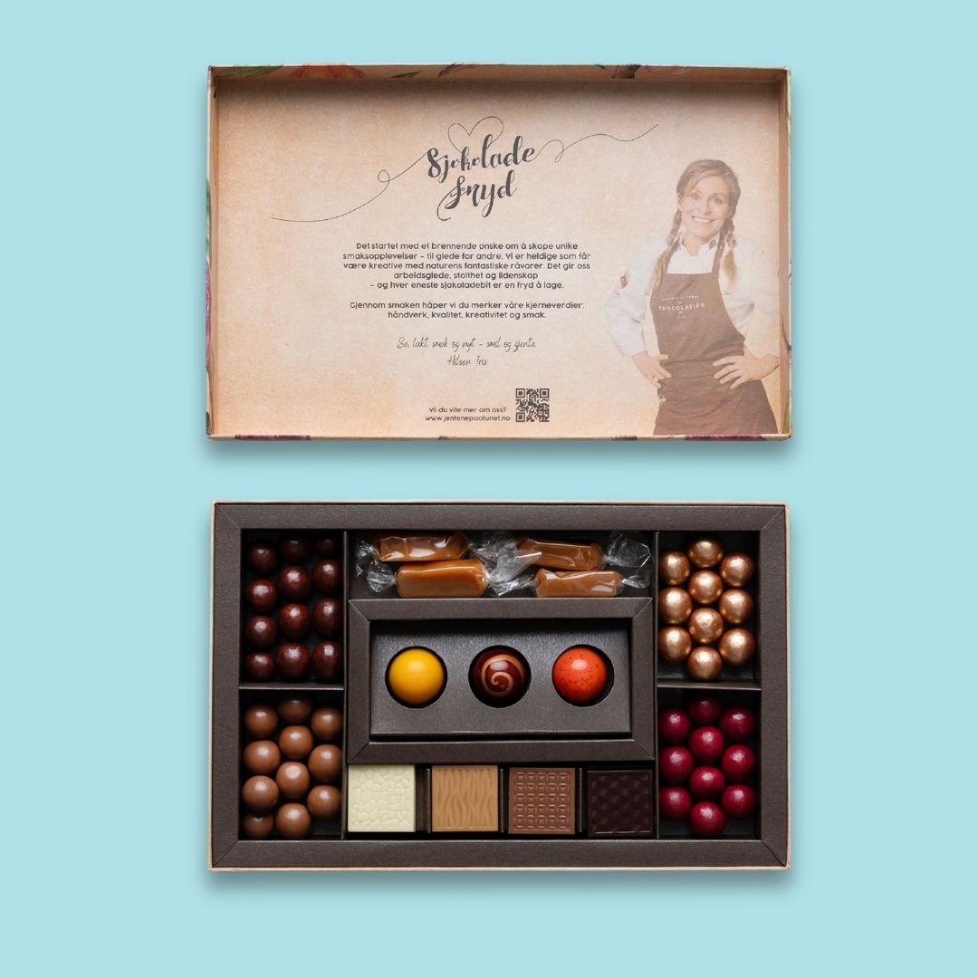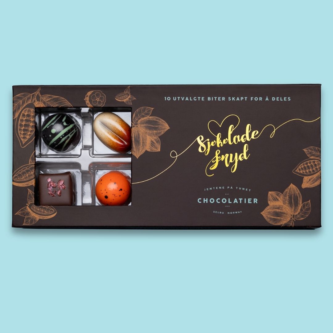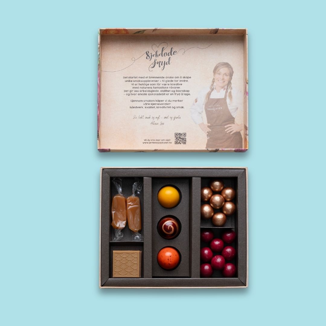 En gave som både ser vakker ut – og smaker enda bedre. Våre gaveesker er fylt med håndlagde, prisvinnende sjokoladebiter, laget med omtanke i hver eneste detalj. Her finner du et variert utvalg av smaker – fra friske og syrlige til fløyelsmyke og fyldige opplevelser. Perfekt som gave til noen du er glad i, eller når du vil unne deg selv noe ekstra godt. Smaken av kvalitet. Håndlaget med kjærlighet.
