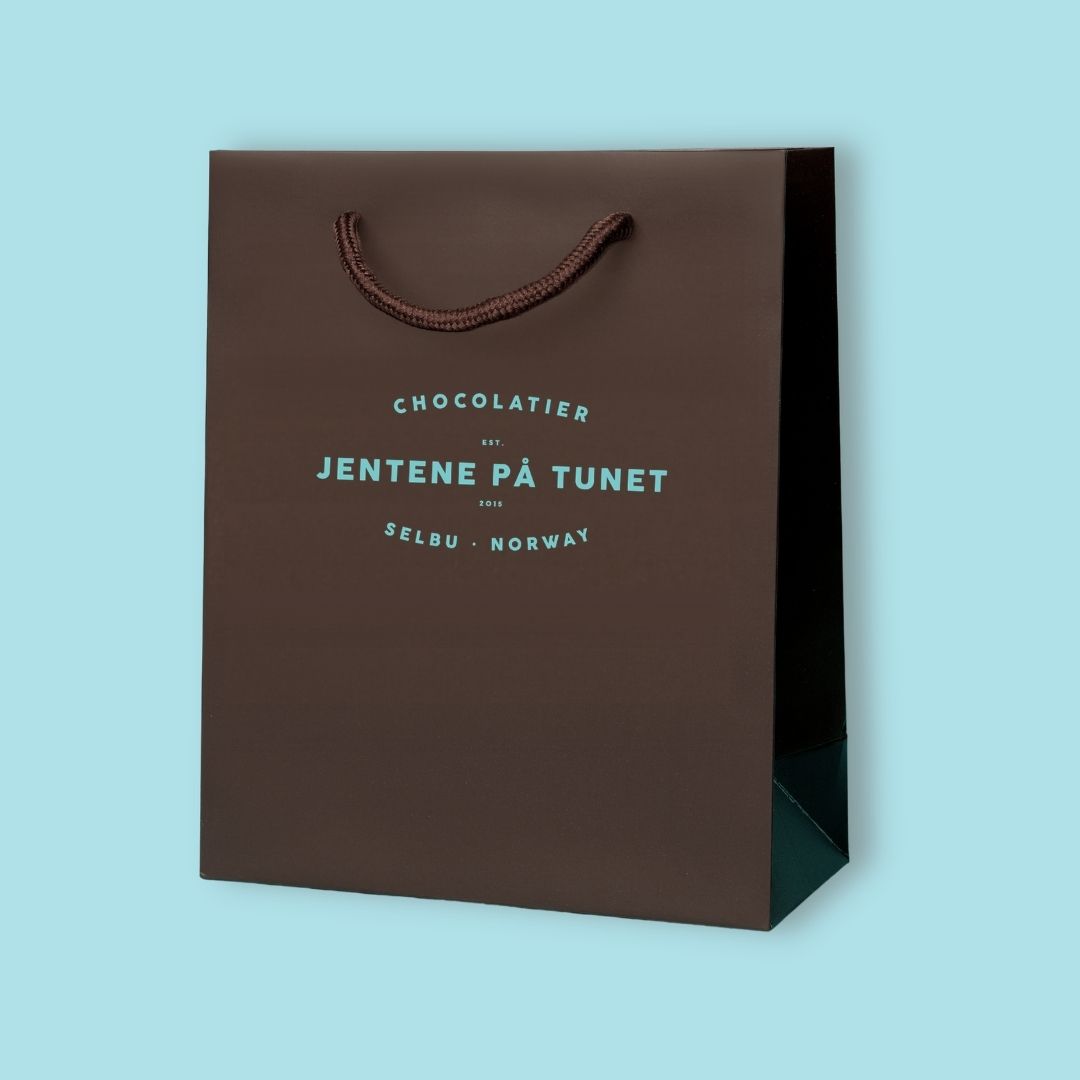 Her finner du poser og emballasje til sjokoladen. Praktiske løsninger når du vil ha noe å bære med deg, eller gi bort flere produkter samlet. Enkelt, fint og funksjonelt.